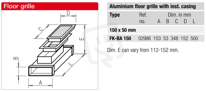 FK-BA 150 Podlahová mřížka s vestavným k najdete v kategoriích Příslušenství, Vzduchové systémy, Vzduchotechnika a topení, Fotovoltaika, vzduchotechnika a topení, výrobce Helios, EAN 4010184029861, kód dodavatele 2986. Podlahová mřížka s vestavným krytem FK-BA 150 HELIOS 2986 nabízíme od 1 ks. Kód EMAS FK-BA 150 Podlahová mřížka s vestavným k je ELOSOS1329647.