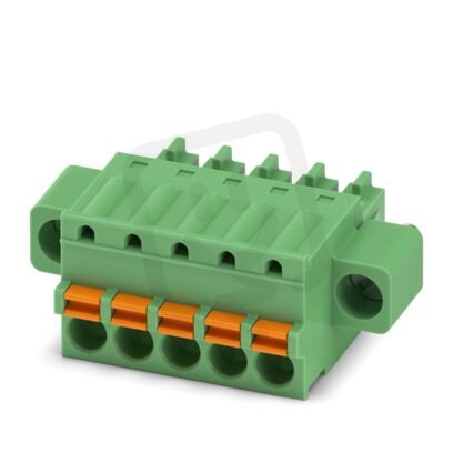 Konektor desek plošných spojů, jmenovitý průřez: 1,5 mm², barva: zelená, jmenovitý proud: 8 A, jmenovité napětí (III/2): 160 V, povrch kontaktů: Sn, typ kontaktu: Zásuvka, počet potenciálů: 5, počet řad: 1, počet pólů: 5, počet přípojek: 5, řada výrobků: FK-MCP 1,5/..-STF, rozteč: 3,81 mm, typ připojení: Pružinové připojení push in, směr připojení vodič/deska: 0 °, systém zásuvných hlavic: COMBICON MC 1,5, zajištění: Šroubový zámek, způsob upevnění: Šroubová příruba, způsob balení: zabaleno v krabici