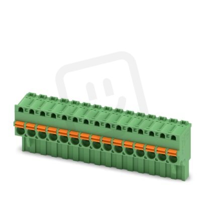 Konektor desek plošných spojů, jmenovitý průřez: 2,5 mm², barva: zelená, jmenovitý proud: 12 A, jmenovité napětí (III/2): 320 V, povrch kontaktů: Sn, typ kontaktu: Zásuvka, počet potenciálů: 15, počet řad: 1, počet pólů: 15, počet přípojek: 15, řada výrobků: FKCVR 2,5/..-ST, rozteč: 5,08 mm, typ připojení: Pružinové připojení push in, směr připojení vodič/deska: 90 °, aretační zámek: - Aretační zámek, systém zásuvných hlavic: COMBICON MSTB 2,5, zajištění: bez, způsob upevnění: bez, způsob balení: zabaleno v krabici