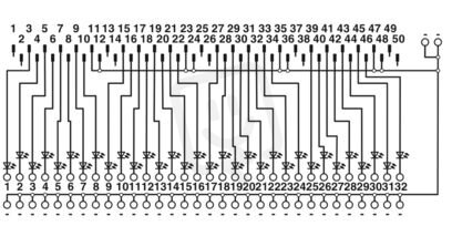 Předávací modul, přípojka 1: IDC/FLK lišta s trny 1x 50-pólový, přípojka 2: Šroubové připojení 64-pólový, přípojka 3: Šroubové připojení 1x 2-pólový, počet kanálů: 32