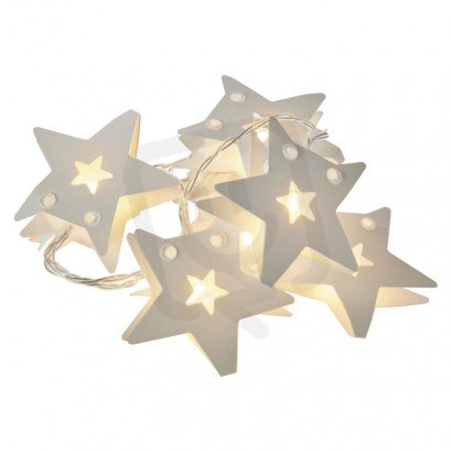 LED vánoční girlanda - hvězdy papír, 2xAA, teplá bílá, časovač