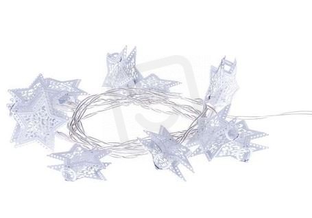 LED vánoční girlanda - bílé hvězdy, 3xAA, teplá bílá, časovač