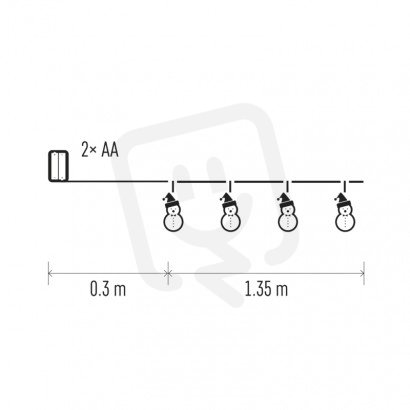 LED vánoční girlanda - sněhuláci, 2xAA, teplá bílá, časovač