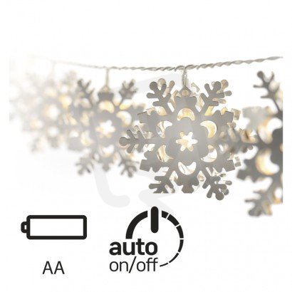 LED vánoční girlanda - vločky kovové, 3xAA, teplá bílá, časovač