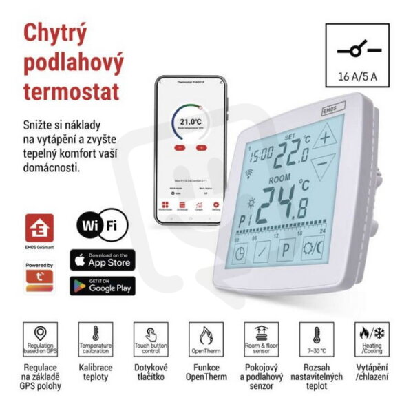 Podlahový programovatelný drátový WiFi GoSmart termostat P56S01F EMOS P56S01F
