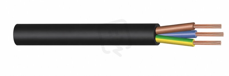 Má měděné jádro, PVC izolaci žil i PVC vnější plášť, kruhovou geometrii a je třídy 5 (flexibilní); jmenovité napětí U 500 V, U0 300 V.