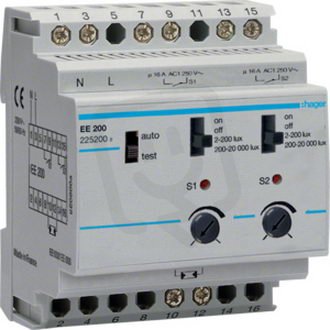 Hager EE200 Soumrakový spínač 2-kanál. 2-200/200-20000 Lx (bez čidla)
