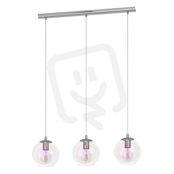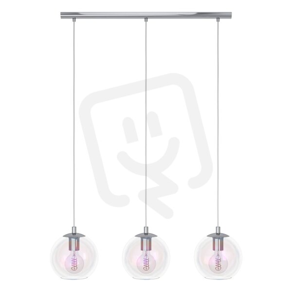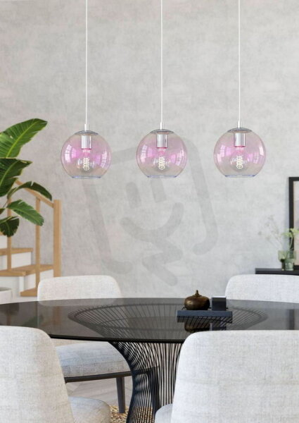 Závěsné svítidlo ARISCANI 2 zaujme svým elegantním vzhledem a moderním designem. Tři koule ze skla s irizujícím efektem visí na tenkých lanových závěsech z protáhlého stropního krytu v lesklém chromu. Irizující sklo hraje se světlem a podle úhlu pohledu vytváří fascinující barevné odlesky. Svítidlo vynikne zejména nad jídelním stolem, barem nebo v obývacím prostoru. Díky otevřené podobě je ideální kombinovat ho s dekorativními žárovkami E27 s vláknem – ty nejsou součástí dodávky. Toto svítidlo přináší do vašeho domova moderní design a stylovou eleganci.