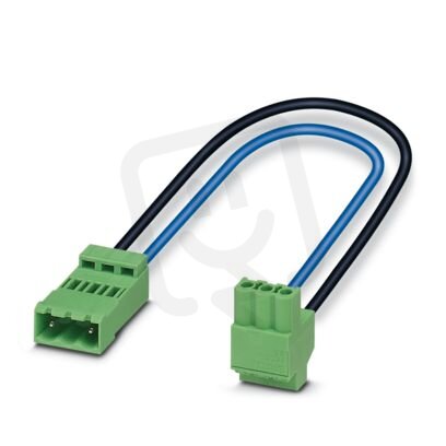 Osazené konektory desek plošných spojů Propojovací kabel s 2 konektory na desku plošných spojů, jmenovitý proud: 9 A, Hlava 1: 3-pólový , rozteč: 5,08 mm , Lisovaný spoj , Trn, Vedení 1: délka kabelu: 0,33 m, Barva: černá, modrá, Typ kabelu:Lanko mPPE, Hlava 2: 3-pólový, rozteč: 5,08 mm , Pružinové připojení push in , Zásuvka, charakteristika produktu: Konektory pro desky s plošnými spoji pro Smart Meter Gateways (SMGW), Lanko mPPE
