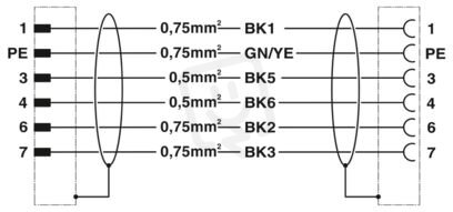 Zástrčka oboustranně zastříknutá plastem, řada: KST, M17-Zásuvka, rovně zastříknutý plastem, počet pólů: 5+PE, druh zajištění: Šroubový zámek, na M17-Trn, rovně zastříknutý plastem, počet pólů: 5+PE, délka kabelu: 10 m, stíněná: ano, barva vnějšího pláště: oranžová RAL 2003, tento výrobek má být od roku 2027-Q1 podle RoHS II bez výjimky 6c (Pb < 0,1 %) bezolovnatý, bezolovnatá alternativa je k dispozici již předem na vyžádání