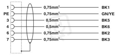 Kabelová zástrčka zastříknutá plastem, řada: KST, M17-Zásuvka, rovně zastříknutý plastem, počet pólů: 5+PE, druh zajištění: Šroubový zámek, délka kabelu: 5 m, stíněná: ano, barva vnějšího pláště: oranžová RAL 2003, tento výrobek má být od roku 2027-Q1 podle RoHS II bez výjimky 6c (Pb < 0,1 %) bezolovnatý, bezolovnatá alternativa je k dispozici již předem na vyžádání