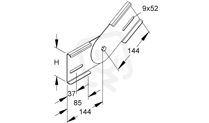 Kloubová spojka, vertikální, pro vytváření vertikálních změn směru průběžných kabelových a stoupacích žebříků a jejich tvarovek, včetně poměrného počtu žárově pozinkovaného upevňovacího příslušenství. Vyrovnání potenciálu se provádí pomocí šroubového spojení s bočnicemi kabelových a stoupacích žebříků a bočnicemi tvarovek. Použití pro Kabelové a stoupací žebříky KSL... a jejich tvarovky s výškou hrany 100 mm Potřeba : 2 kusy na styčné místo Rozměry (přibližné míry) pro výšku v : 100 mm Materiál : ocel, pásově pozinkovaná dle DIN EN 10346