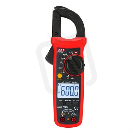 Digitální klešťový měřič UT202F slouží pro měření střídavých a stejnosměrných napětí do 600V, AC proudů do 600A a frekvece napětí do 600V. Na všech rozsazích má ochranu před větším napětím než 600V a zvukový a optický alarm. Čtyřmístný více segmentový displej o rozměru 37 x 25 mm se zadním podsvícením a rychlou obnovovací frekvencí (3krát/s) . Rozevření čelistí umožňuje měření na kabelech o průměru až 28mm. Bezkontaktní snímání elektrického pole (NCV) umožňuje detekovat vodiče pod napětím ve dvou citlivostech -EFLo a - EFHi pro rozvody nn 110V/50/60Hz a 230V/50/60Hz. Přiložená sonda - kryt hrotů na testovacích kabelech umožňuje měření na rozvodech nn v kategorii CAT III bez nebezpečí vzniku oblouku. Bez krytů na hrotech lze měřit testovacími kabely jen na rozvodech nn kategorie CAT II. Napájecí baterie 2ks 1,5V R03. Příkon měřiče je cca 1,8 mA. Obvod má funkci automatické úspory energie. Spotřeba v režimu spánku je <11µA, což účinně prodlužuje životnost baterie na cca 400 hodin.