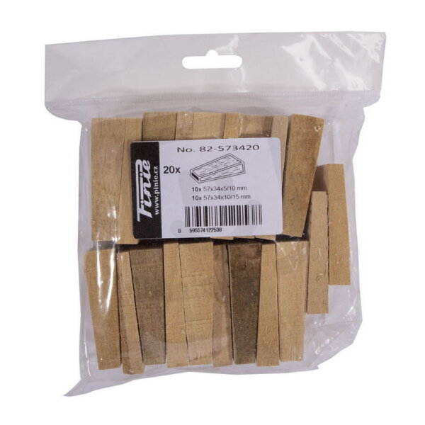 Klínky montážní | mix (1bal/20ks) , výrobce Pinie, EAN 8595574122538, kód dodavatele PI82-573420. Klínky montážní mix (1bal/20ks) PINIE PI82-573420 nabízíme od 1 bal. Kód EMAS Klínky montážní | mix (1bal/20ks) je ELOSOS1793726.