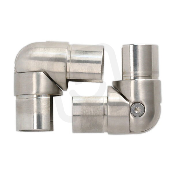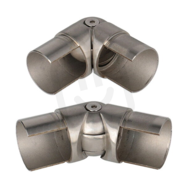 Kloubová spojka madla A o 90-180°, materiál nerezová ocel SUS316, kartáčovaný povrch (#320), včetně 2 ks hliníkových světlotěsných konektorů