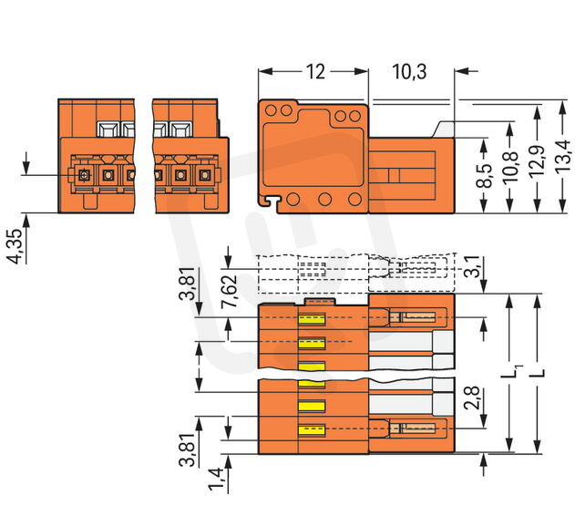 Konektor s pájecími piny CAGE CLAMP 1,5mm2 oranžová 15pól. WAGO 734-345