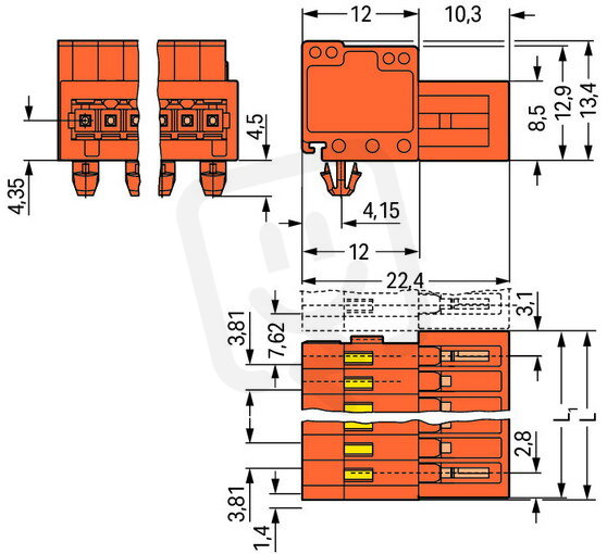 Konektor s pájecími piny CAGE CLAMP 1,5mm2 oranžová 18pól. WAGO 734-348/018-000