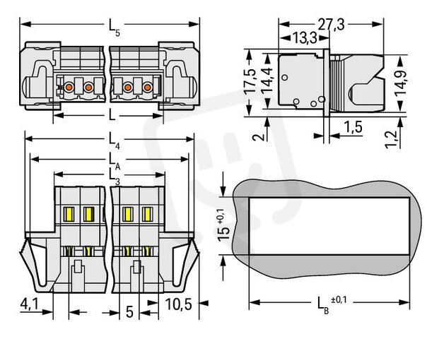 721-603/114-000 1vodičový konektor s páj najdete v kategoriích Průmyslové zásuvky a vidlice, Průmyslové konektory, Konektory, Vypínače, spínače, zásuvky a příslušenství, EAN 4050821280248, kód dodavatele 721-603/114-000. Konektor s pájecími piny CAGE CLAMP 2,5mm2 šedá 3pól. WAGO 721-603/114-000 nabízíme od 50 ks. Kód EMAS 721-603/114-000 1vodičový konektor s páj je ELOSOS1533375.