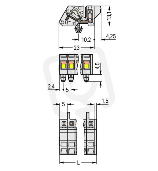 Konektor (zásuvka) úhlový CAGE CLAMP 2,5mm2 sv.šedá 11pól. WAGO 721-311/008-000