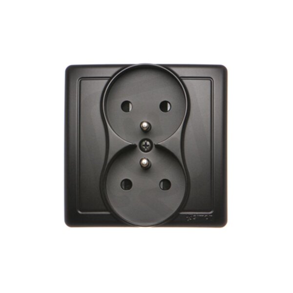 Zásuvka 2P+T dvojitá s clonkami černá matná 16A :3015 KONTAKT SIMON BMGZ2Z/49