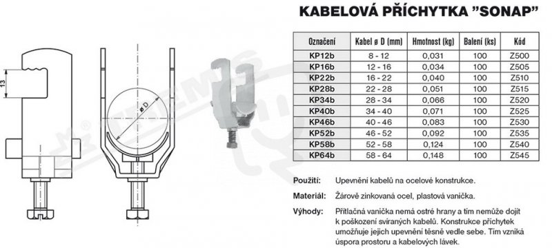 KP40b kabelová příchytka 34-40 mm