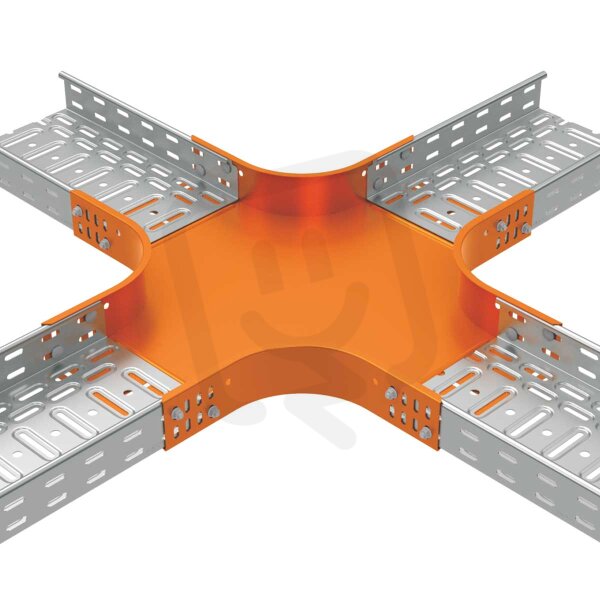 Kříž pro vytvoření křížení dvou kabelových tras o rozměru 110x200 mm, povrchová úprava - Magnelis. Spojení s kabelovým žlabem je prováděno pomocí šroubů bez nutnosti použití speciálních spojek