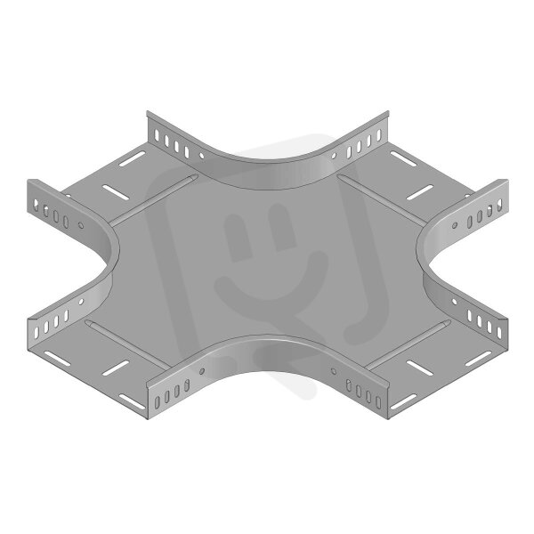 Kříž pro vytvoření křížení dvou kabelových tras o rozměru 110x400 mm, povrchová úprava - Magnelis. Spojení s kabelovým žlabem je prováděno pomocí šroubů bez nutnosti použití speciálních spojek
