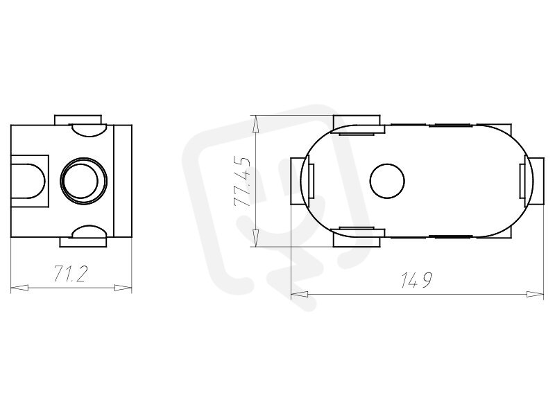 Má průměr 60 mm, vnější rozměry 67 × 149 mm (šířka × délka) a vnitřní hloubku 65,8 mm, je v barvě černá a má stupeň krytí IP2X.