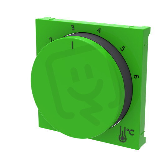 Kryt termostatu prostorového s otočným ovládáním, s upevňovací maticí, zelená/kouř. černá