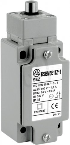 KSBM5E11X11 Koncový spínač kovový s nere najdete v kategoriích Spínací a jistící přístroje, Koncové, polohové spínače, Rozvodnice, výkonové spínací a jistící prvky, Koncový spínač, výrobce SEZ DK, EAN 8585007390788, kód dodavatele KSBM5E11X11. Koncový spínač kovový s nerezovým čepem, šířka 40mm SEZ DK KSBM5E11X11 nabízíme od 1 ks. Kód EMAS KSBM5E11X11 Koncový spínač kovový s nere je ELOSOS1003630.