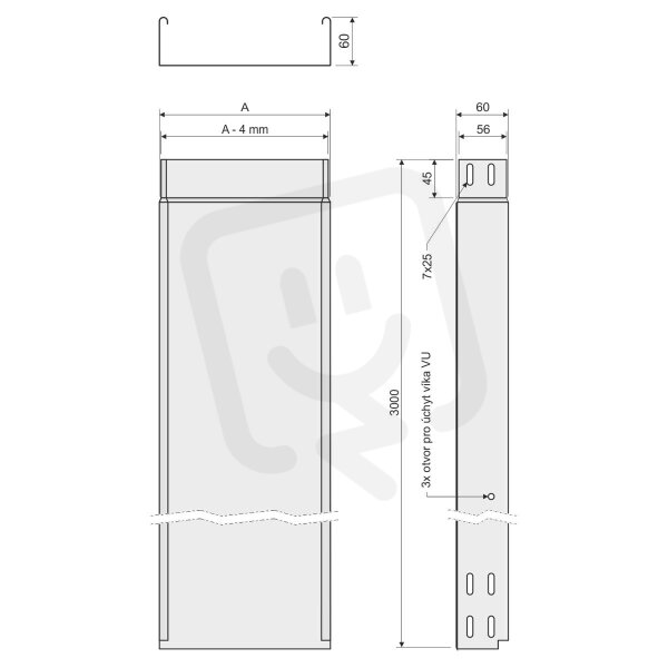 Kabelový žlab s integrovanou spojkou KZIN 60x500 z plechu tloušťky 1,00 mm v povrchové úpravě sendzimir, neděrovaný.