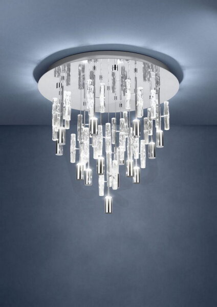 LED stropní svítidlo ORIHUELA se v této menší verzi prezentuje stejně elegantně jako jeho větší sestra – přitom je však dokonale přizpůsobené místnostem s omezeným prostorem. Více závěsných světel s průzračnými prvky z briliantového skla visí v různých výškách z kulatého chromovaného baldachýnu a vytvářejí jemně se zužující světelnou skulpturu. Broušené skleněné těleso láme světlo do třpytivých odrazů a zajišťuje tak atmosférické osvětlení. Teplota barvy světla se pohodlně mění pomocí vypínače ve 3 stupních – ideální pro různé světelné nálady. Ať už v obývacím pokoji, ložnici nebo vstupní hale: ORIHUELA přináší díky ušlechtilým materiálům a kompaktnímu formátu stylové světelné akcenty do každého interiéru.