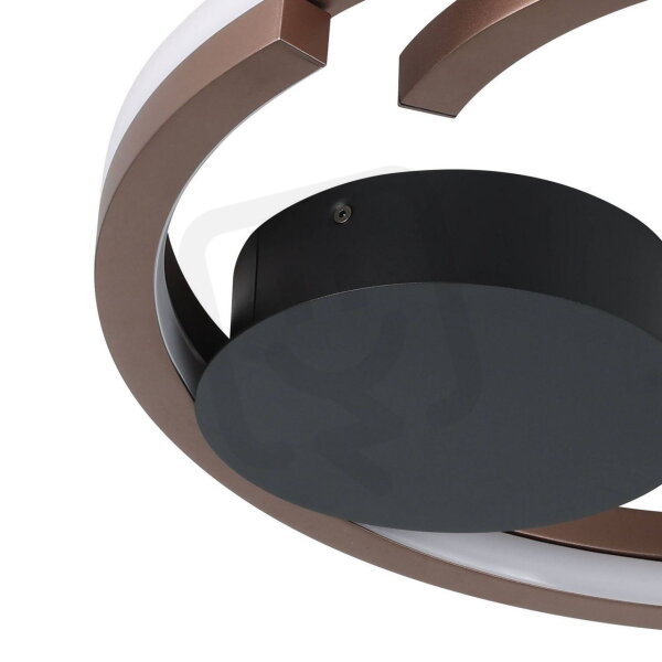 LED stropní svítidlo MEZZOMONTE zaujme svým harmonickým designem a kvalitními materiály. Dva do sebe zakřivené světelné kruhy z kovu v elegantním bronzovém provedení tvoří otevřenou kruhovou strukturu, která zajišťuje moderní a dynamickou estetiku. Světlo vyzařuje oboustranně podél vnitřních i vnějších stran, čímž poskytuje rovnoměrné a bezoslnění osvětlení. Pomocí přiloženého dálkového ovladače lze individuálně nastavit jak jas, tak barevnou teplotu – od příjemně teplé bílé po čistě studenou bílou (CCT). Tato flexibilní regulace světla činí z MEZZOMONTE ideální volbu pro obytné a ložnicové prostory, kde je požadována jak atmosféra, tak funkčnost.