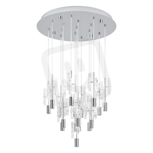 Ve své podobě závěsného svítidla ORIHUELA vytváří zvláštní prostorový efekt. Z kulatého stropního baldachýnu v chromu visí četné tenké lanko, na jejichž koncích jsou uspořádány průhledné briliantové skleněné prvky ve stupňovité formaci, které zajišťují působivou hru světla. Díky delší délce závěsu vzniká elegantní hloubkový efekt – ideální pro vysoké místnosti, galerie nebo schodiště. Světlo se mnohonásobně láme přes fasetované skleněné těleso a vytváří třpytivé akcenty. Teplota barvy svítidla může být pohodlně nastavena pomocí světelného spínače ve 3 úrovních. Díky kombinaci exkluzivního designu a vysoce kvalitních materiálů je ORIHUELA závěsným svítidlem s reprezentativním charakterem.