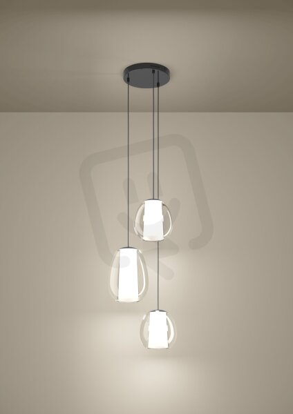 LED závěsné svítidlo MENORCA se třemi plamínky kombinuje sochařskou eleganci s promyšlenou světelnou technikou. Tři vysoce kvalitní skleněné tělesa visí v různých výškách z kulatého baldachýnu, čímž vzniká harmonická, téměř vznášející se světelná skulptura – ideální pro kulaté stoly, prostorné sezení nebo otevřené obytné prostory s centrálním ohniskem