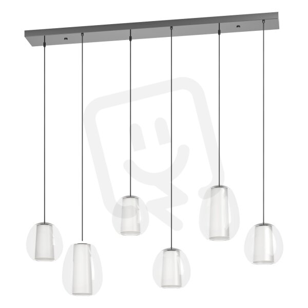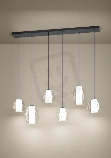 Závěsná LED lampa MENORCA se šesti plameny působí jako lineární světelný objekt s architektonickou čistotou. Šest svítidel z vysoce kvalitního skla visí rovnoměrně uspořádaných pod úzkým, protáhlým stropním krytem, což z ní činí ideální řešení osvětlení pro dlouhé jídelní stoly, pulty nebo kuchyňské ostrůvky. Její vyvážená geometrie podtrhuje moderní obytné a pracovní prostory výrazným designovým akcentem