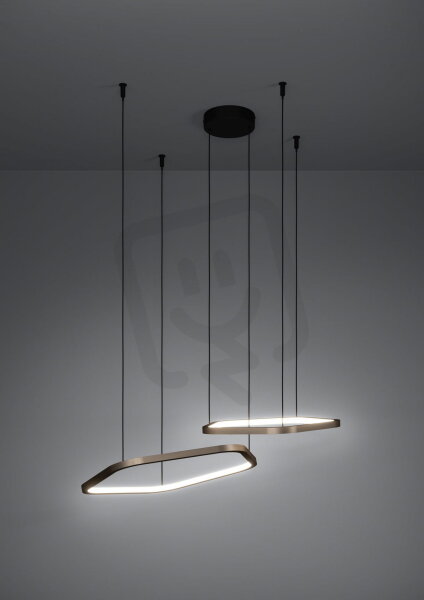 LED závěsné svítidlo ESTRELLA spojuje moderní světelnou technologii s výrazným designem. Dva organicky tvarované, geometricky posunuté světelné rámy z hliníku v elegantním bronzovém provedení visí na tenkých lanových závěsech z kulatého černého baldachýnu. Toto víceúrovňové uspořádání vytváří zajímavou světelnou architekturu s dynamickým efektem – ideální nad jídelními stoly nebo v otevřených obytných prostorách. Integrovaná funkce CCT umožňuje plynulé nastavení barevné teploty od teplé bílé po studenou bílou, podle denní doby nebo nálady. Navíc lze světlo pohodlně stmívat pomocí přiloženého dálkového ovladače. Svítidlo nabízí jak optickou lehkost, tak technickou flexibilitu – a dělá z ESTRELLA skutečný skvost moderních interiérů.