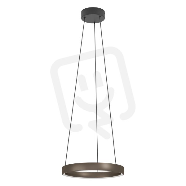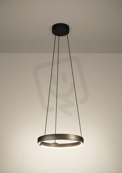 LED závěsné svítidlo TRABUCO zaujme moderním, minimalistickým designem a vysoce kvalitními materiály. Kroužkový svítící prvek je vyroben z hliníku a oceli v elegantním bronzovém provedení, zavěšený na jemných ocelových lanech a zakončený kulatou stropní rozetou v černé barvě