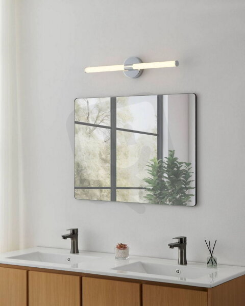 Nástěnné zrcadlové světlo RAMOLA zaujme svým štíhlým tvarem a elegantním vzhledem v lesklém chromu. Matný kryt zajišťuje rovnoměrné, bezoslnění rozložení světla – ideální pro každodenní použití před zrcadlem. Díky moderní technologii CCT lze barvu světla flexibilně nastavit: od teplé bílé až po denní bílou. Světlo se tak vždy přizpůsobí požadované atmosféře nebo použití. RAMOLA je vybavena krytím IP44, což ji chrání proti stříkající vodě – ideální pro použití ve vlhkých prostorách, jako je koupelna. S délkou 600 mm poskytuje dostatečné osvětlení a harmonicky zapadá do moderních interiérových konceptů.