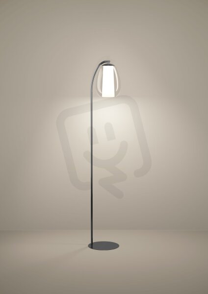 Stojací lampa MENORCA LED spojuje technickou vyspělost s vysoce kvalitním designem. Její nápadná hlava svítidla je vyrobena z dvouvrstvého skleněného tělesa: vnitřní část je matná a vnější průhledná, spojené do jednoho celku, což vytváří fascinující optický efekt s jemným rozptylem světla a elegantním hloubkovým dojmem. Sklo zdánlivě lehce visí na zakřivené konstrukci v ušlechtilém černém chromu – estetický poutač pro moderní interiéry