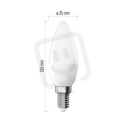 Tvar svíčka, délka 103 mm, průměr 35 mm, index podání barev 80-89 a úhel paprsku 240°, přičemž žárovka není stmívatelná a má průměrnou životnost 30000 h.