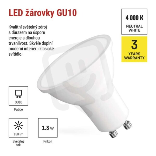 LED žárovka Classic MR16 bílá, GU10, 1,3 W (16 W), 150lm, neutrální EMOS ZQ8EL3