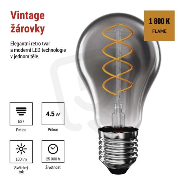 LED žárovka DECO SMOKED A60, E27, 4,5 W (19 W), 180 lm, flame EMOS Z55311
