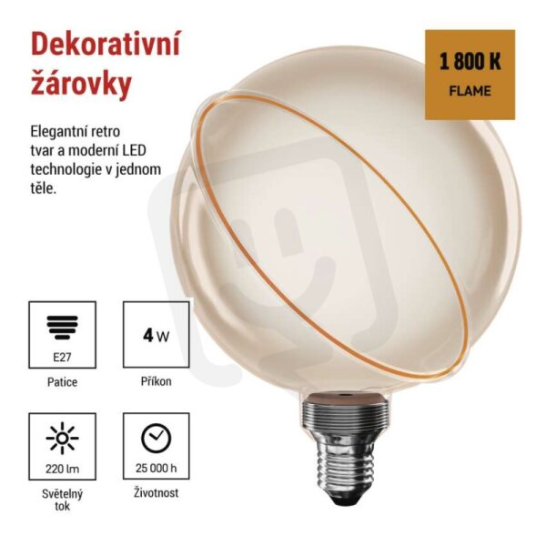 LED žárovka DECO G130SRA, E27, 4 W (22 W), 220 lm, flame EMOS Z5CS11