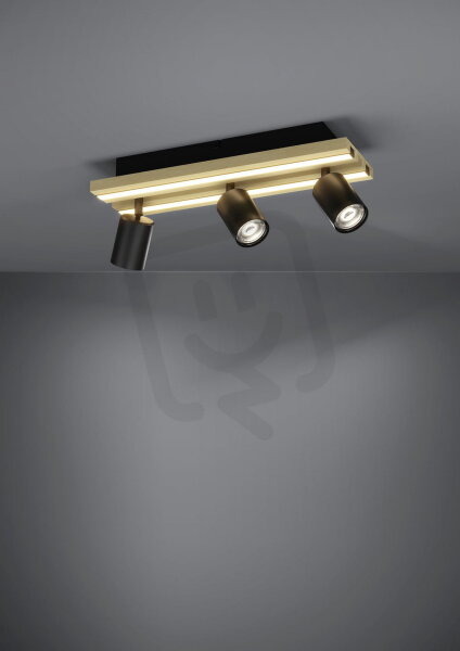 Stropní svítidlo GESTEIRA kombinuje moderní design s funkční všestranností. Skládá se z obdélníkové dřevěné desky v přírodním dřevěném vzhledu, která je vybavena dvěma integrovanými LED pásky pod bílým plastovým difuzérem, což zajišťuje rovnoměrné, bezoslnění základní osvětlení. Tři černé reflektory z hliníku a oceli jsou flexibilně připevněny na desku a umožňují cílené osvětlení jednotlivých oblastí. Kryt spojuje černou ocel s hnědým dřevem a vytváří tak v prostoru přirozené akcenty. Svítidlo disponuje funkcí paměti a lze jej pohodlně ovládat pomocí nástěnného vypínače. Díky krytí IP20 je vhodné pro použití v obytných prostorách a díky svému nenápadnému, přesto stylovému designu se harmonicky začlení do různých stylů zařízení. Zdroj světla je pevně zabudovaný.