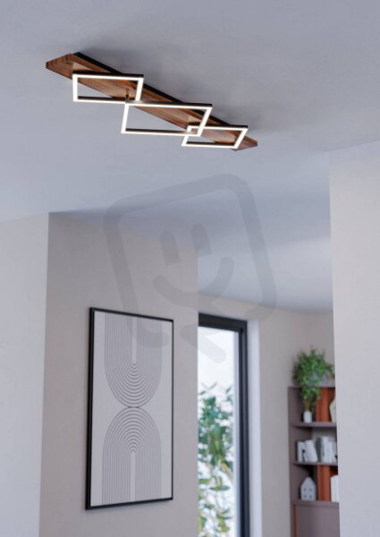 Tříplamenné LED stropní svítidlo BOYAL zaujme výraznou kombinací přírodně upraveného dřevěného dekoru a matně černého kovu. Tři posunutě uspořádané světelné rámy v geometrickém tvaru tvoří střed designu a zajišťují rovnoměrné, neoslňující osvětlení prostoru. Teplá bílá barva světla vytváří příjemnou atmosféru, ideální pro obývací, jídelní nebo pracovní prostory. Přes svůj nápadný vzhled se BOYAL harmonicky začleňuje jak do moderních, tak přírodě blízkých interiérových konceptů. Svítidlo lze stmívat pomocí vhodného nástěnného stmívače (není součástí balení), což nabízí další možnosti pro individuální nastavení světelných nálad.