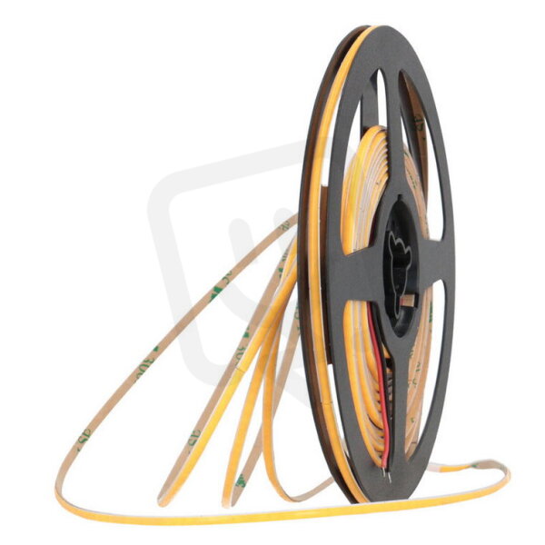 Stmívatelný LED pásek COB, teplá bílá (3000K), 6W, 320LED, 600lm/m, CRI>90, segment 50mm, 16LED/segment, IP20, DC 24V, životnost 50000h, šíře 3mm, bílý PCB pásek, max. délka pásku při jednostranném zapojení: 5m, opatřen samolepící páskou 3M, UV stabilní. Balení 10m