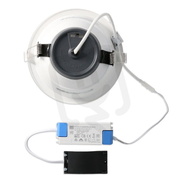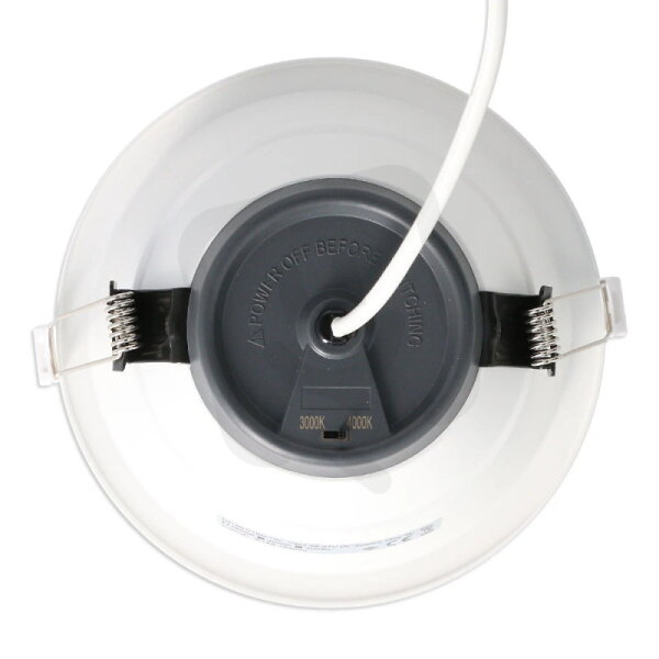 LED podhledové svítidlo 18W, 230V, IP64/IP20, 2CCT - teplá nebo neutrální bílá, světelný tok 1500lm/3000K, 1620lm/4000K, vyzařovací úhel 90°, CRI 90, životnost 100.000h, rozměry ∅ 167x87mm, montážní otvor ∅ 145-155mm, materiál hliník/plast, stmívatelné triak, PF>0,9, s přepínačem teploty chromatičnosti 3000/4000K