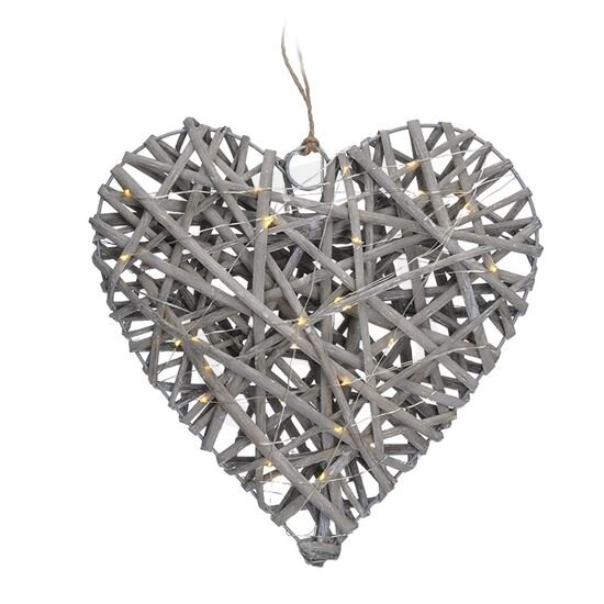 LED ratanové srdce, 30x LED, 2x AA, 30cm