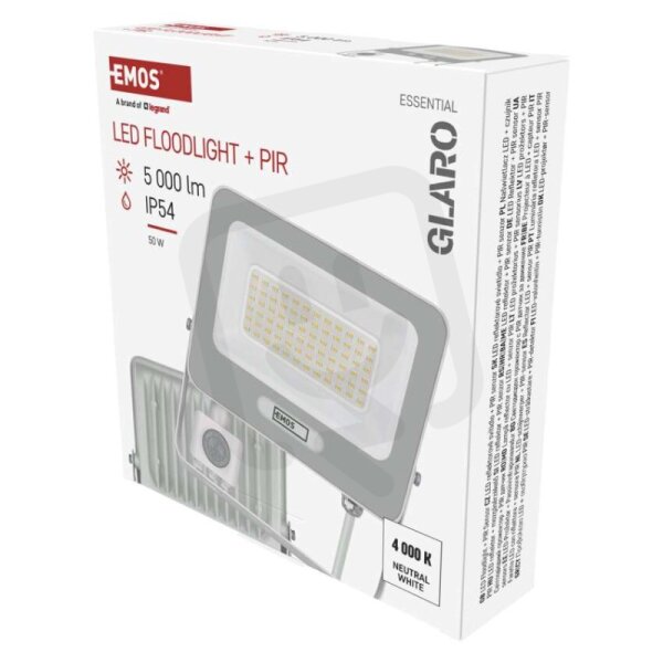 LED reflektor GLARO s pohybovým čidlem 50 W bílý IP54 5000lm neutrální ZS2344W